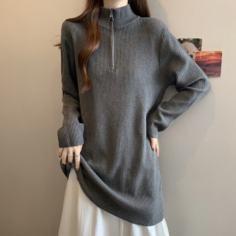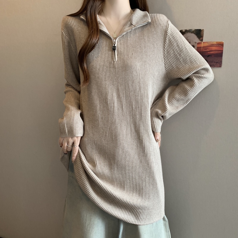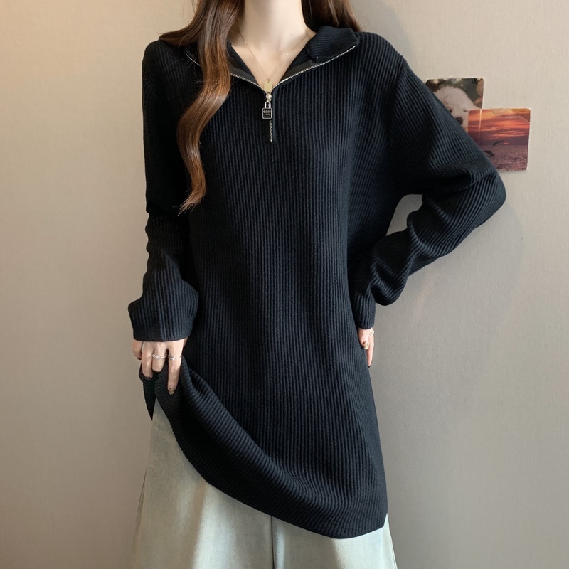 实拍大码中长款遮屁股针织衫女2025秋冬新款宽松毛衣连衣裙打底衫