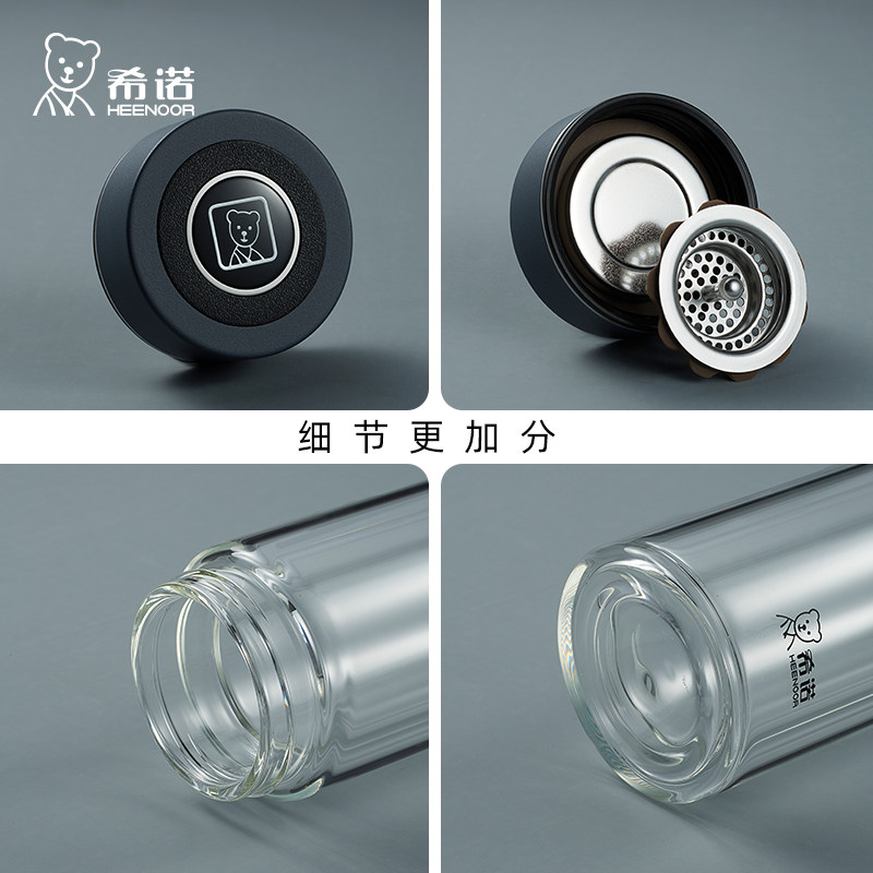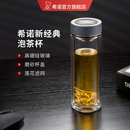 希诺玻璃杯双层隔热泡茶杯男商务便携办公室水杯女杯子家用喝水