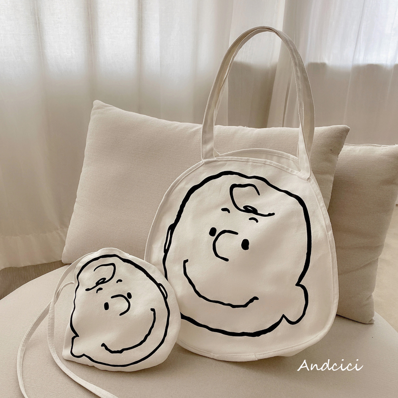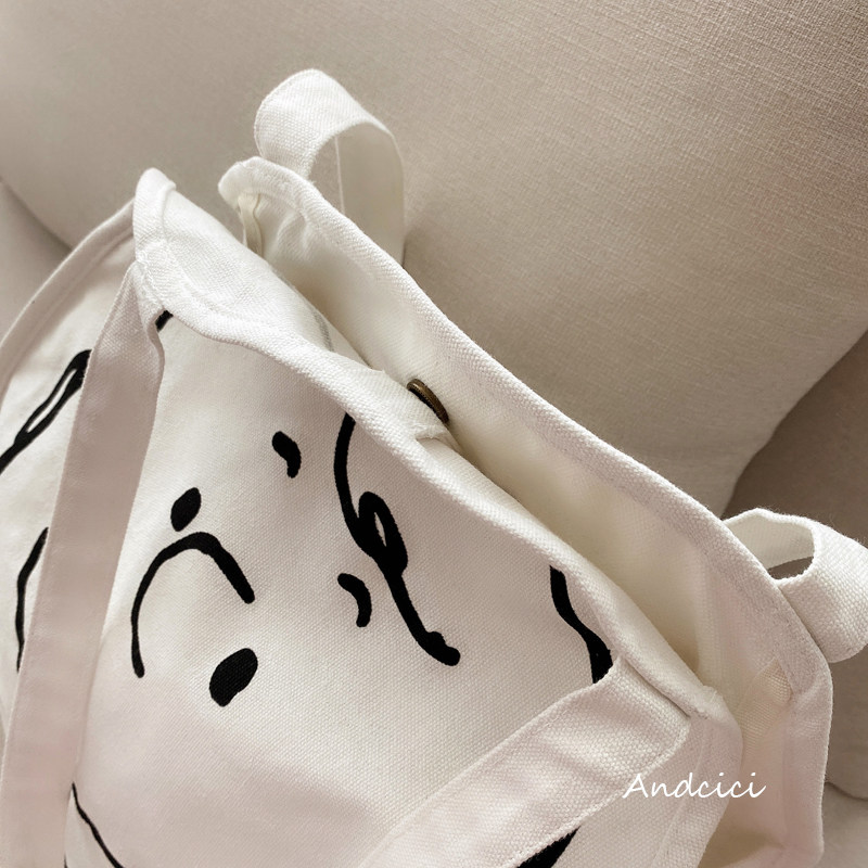 ANDCICI韩版设计感学生书包snoppy帆布包女ins单肩简笔画大购物袋