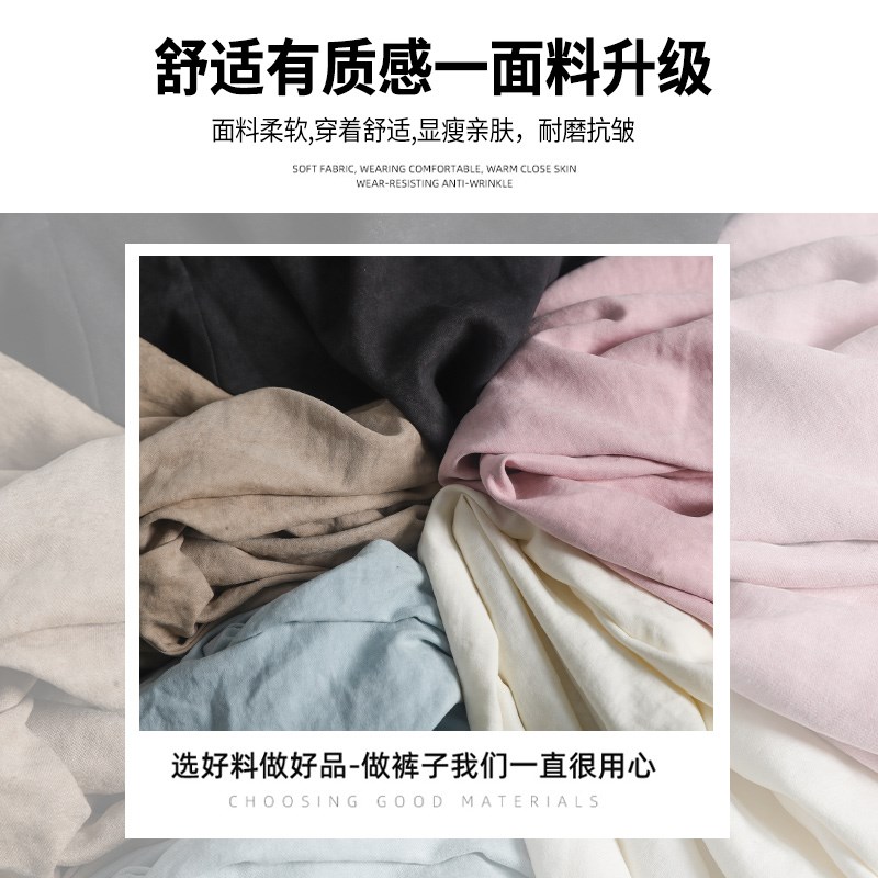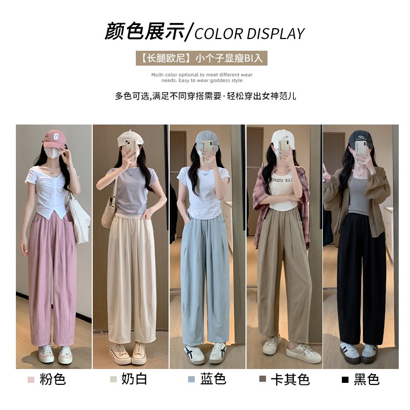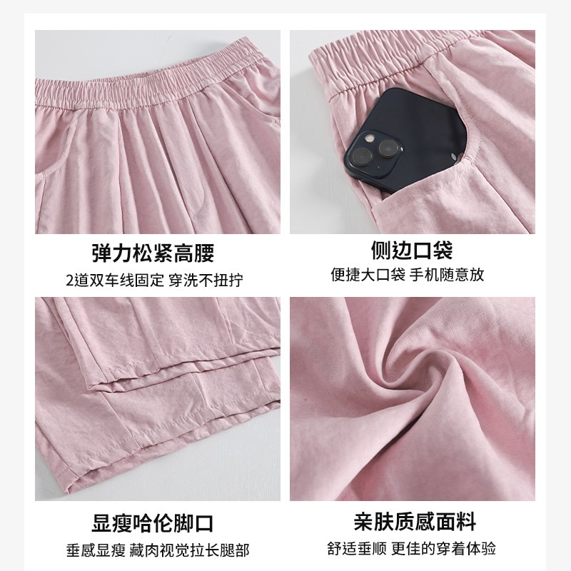 粉色冰丝阔腿裤女夏2024新款高腰小个子九分哈伦裤直筒.奶奶萝卜