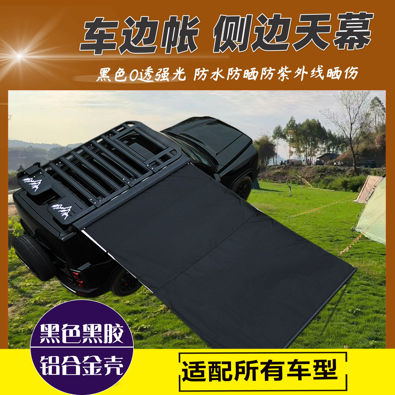 车边天幕侧边帐篷户外SUV车载侧帐黑胶遮阳棚防晒防雨铝壳车边帐