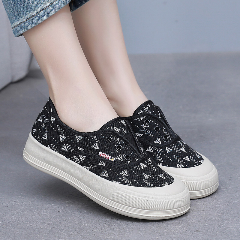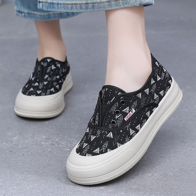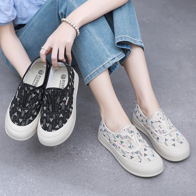 老北京布鞋女鞋2025秋季新款平底板鞋厚底软底帆布鞋懒人鞋一脚蹬
