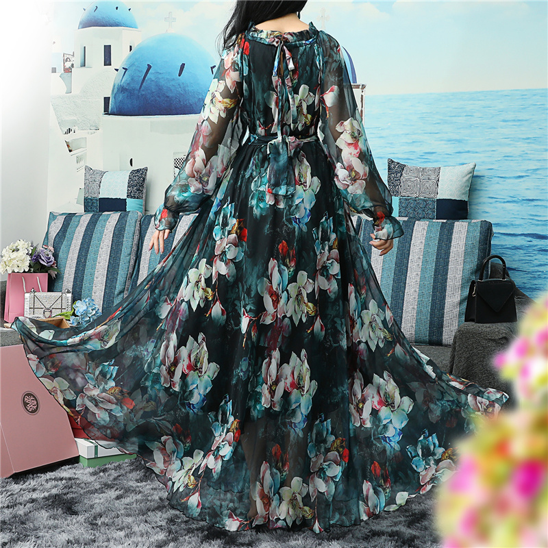 2021秋季新款大摆长裙长袖法式连衣裙碎花雪纺夏胖mm长款仙女气质