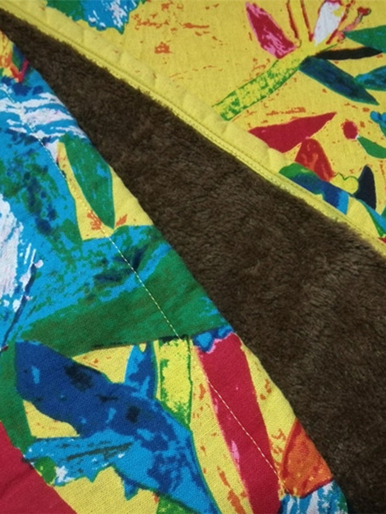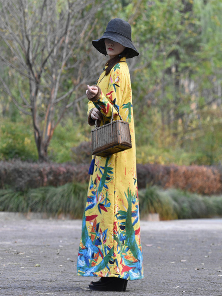 中国风冬季新款盘扣对襟立领中式棉大衣棉袄长款东北大花布棉服