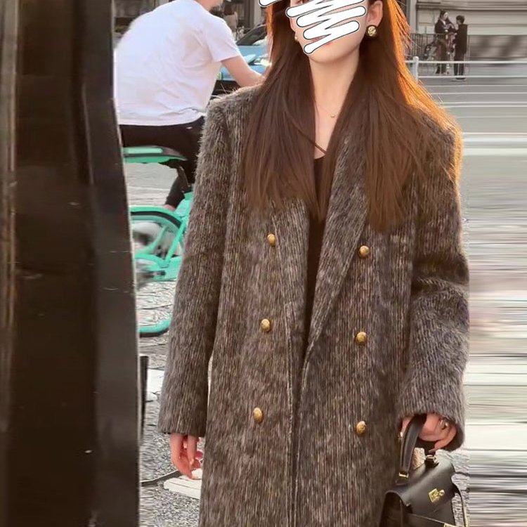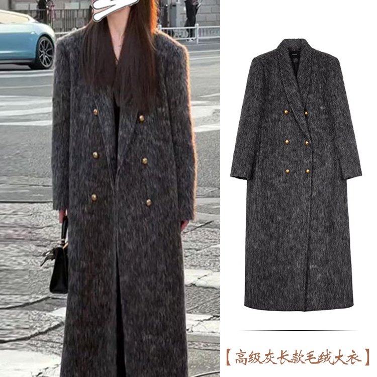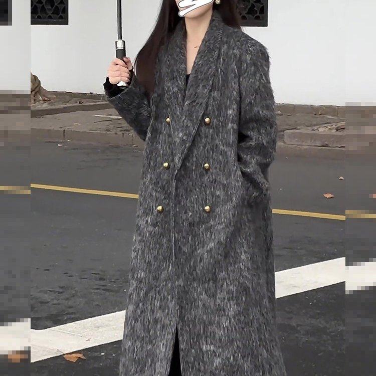 Luis璐曼城旧事 冬季新款时尚气质高级灰长款毛绒大衣