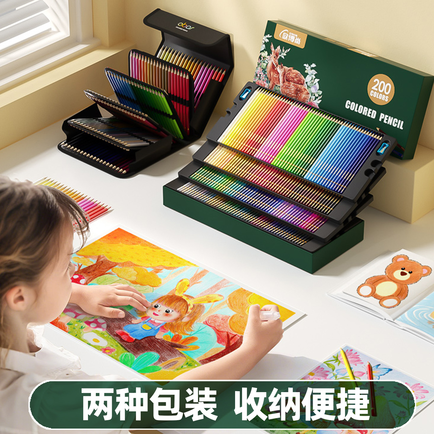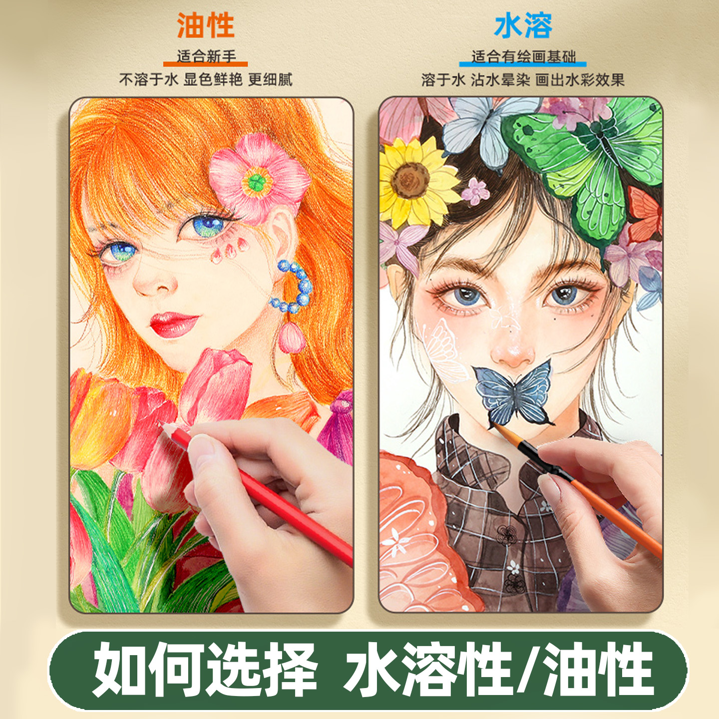专业200色水溶性油性彩铅美术生专用初中生笔儿童彩色铅笔绘画小学生动漫72色48色画画彩笔120水彩100水性150