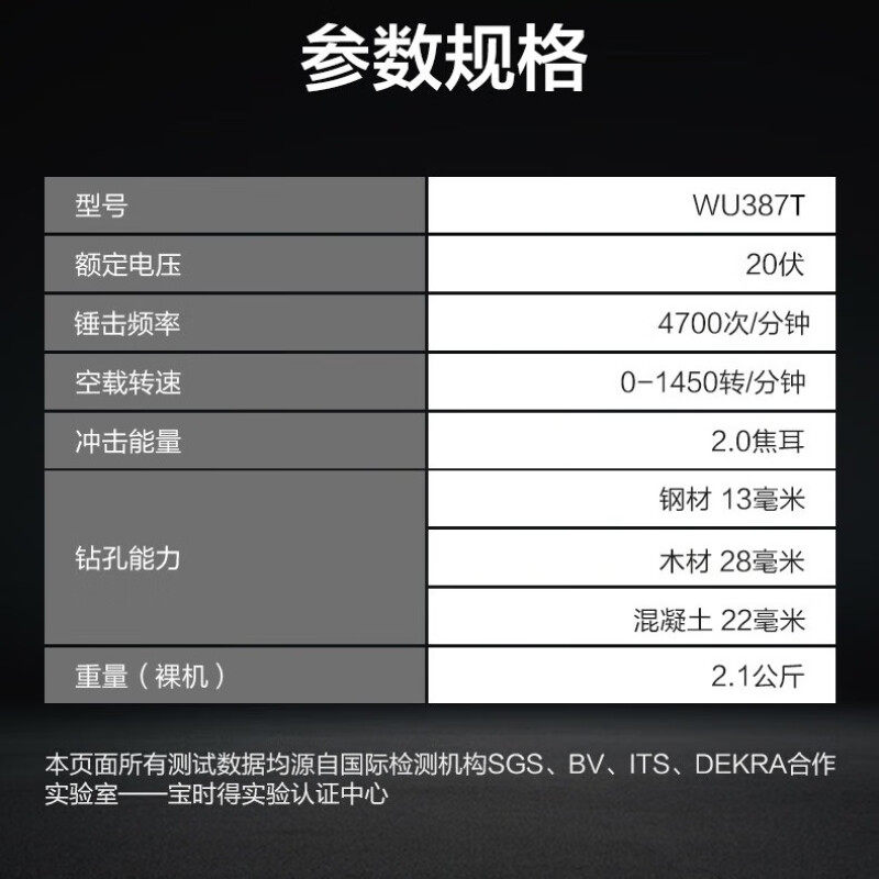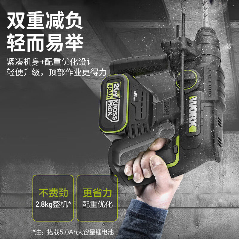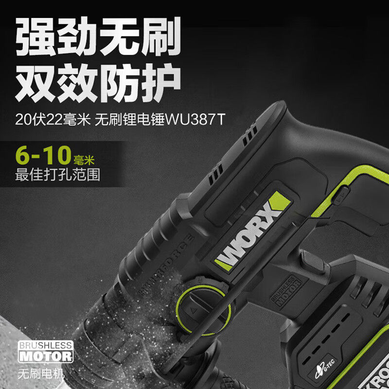 威克士WU387T充电无刷电锤混凝土大功率工业级锂电电锤电动工具