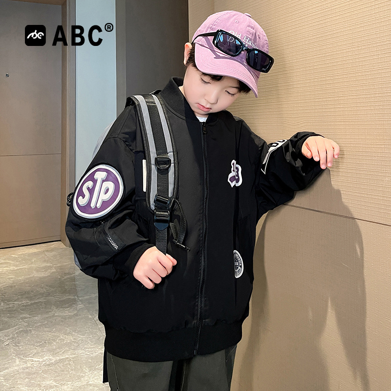 ABC男童外套春秋2025新款春季夹克衫儿童装上衣中大童男孩棒球服