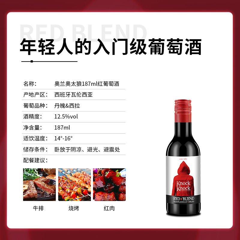 奥兰小红帽干红葡萄酒187ml*6 西班牙原瓶进口红酒晚安酒小瓶红酒
