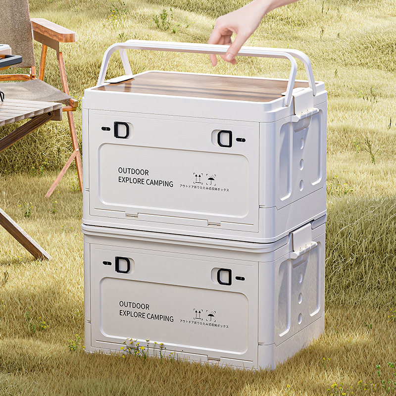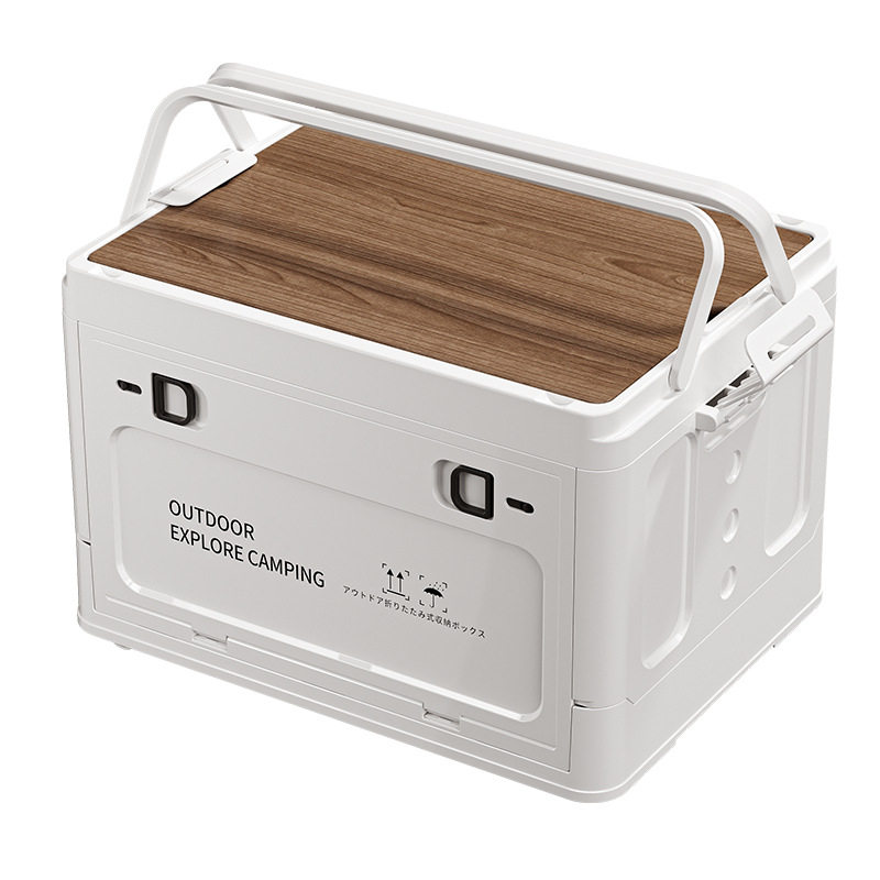 手提折叠收纳箱侧开车载搬运箱储物箱野餐带木盖收纳箱提篮礼品箱