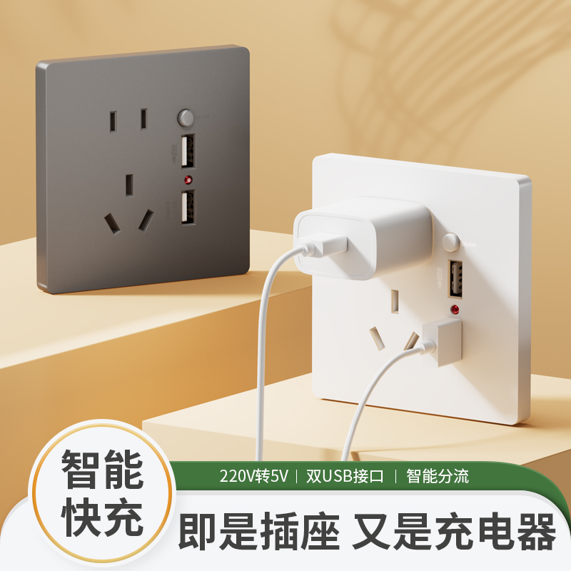 国际电工5五孔带TypeC家用86型暗装墙壁20W快充USB开关插座面板