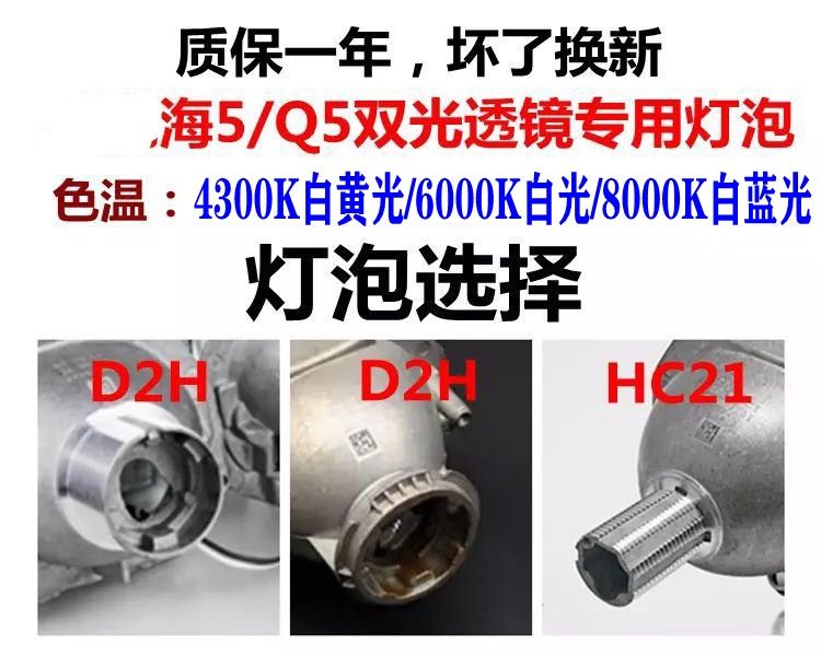 汽车改装Q5海5双光透镜超亮强聚光D2H氙气灯泡HC21 9012疝气大灯
