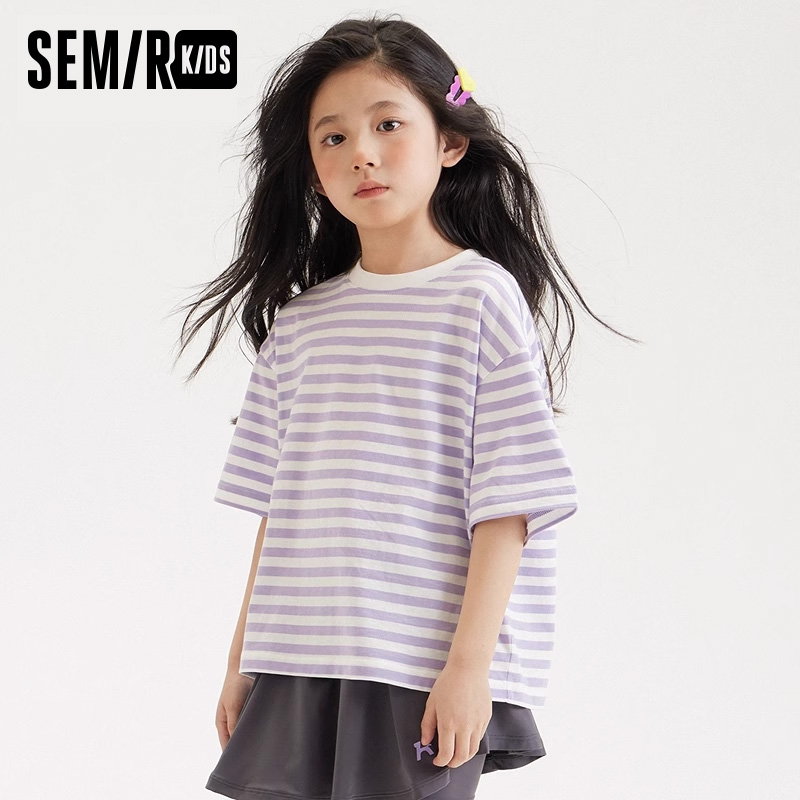 森马儿童多色夏季男女宝T恤纯色插肩袖儿童短袖百搭条纹学生上衣