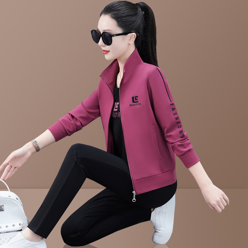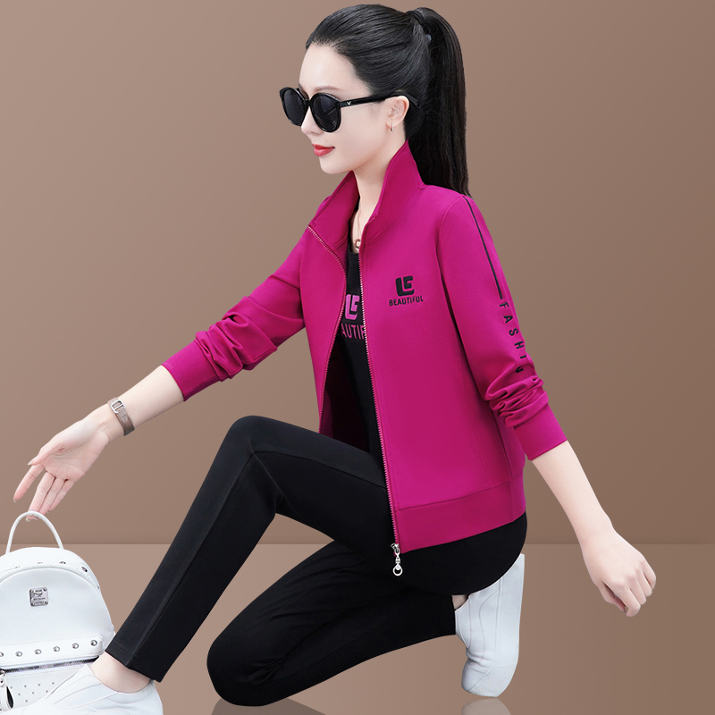 运动套装女春秋2023新款潮牌韩版时尚洋气立领开衫户外休闲三件套
