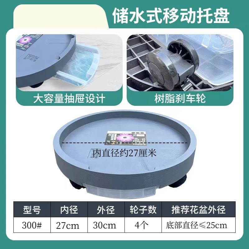 花博士圆加厚大承重PP树脂带抽屉花盆移动托盘接水托盘万向轮花托
