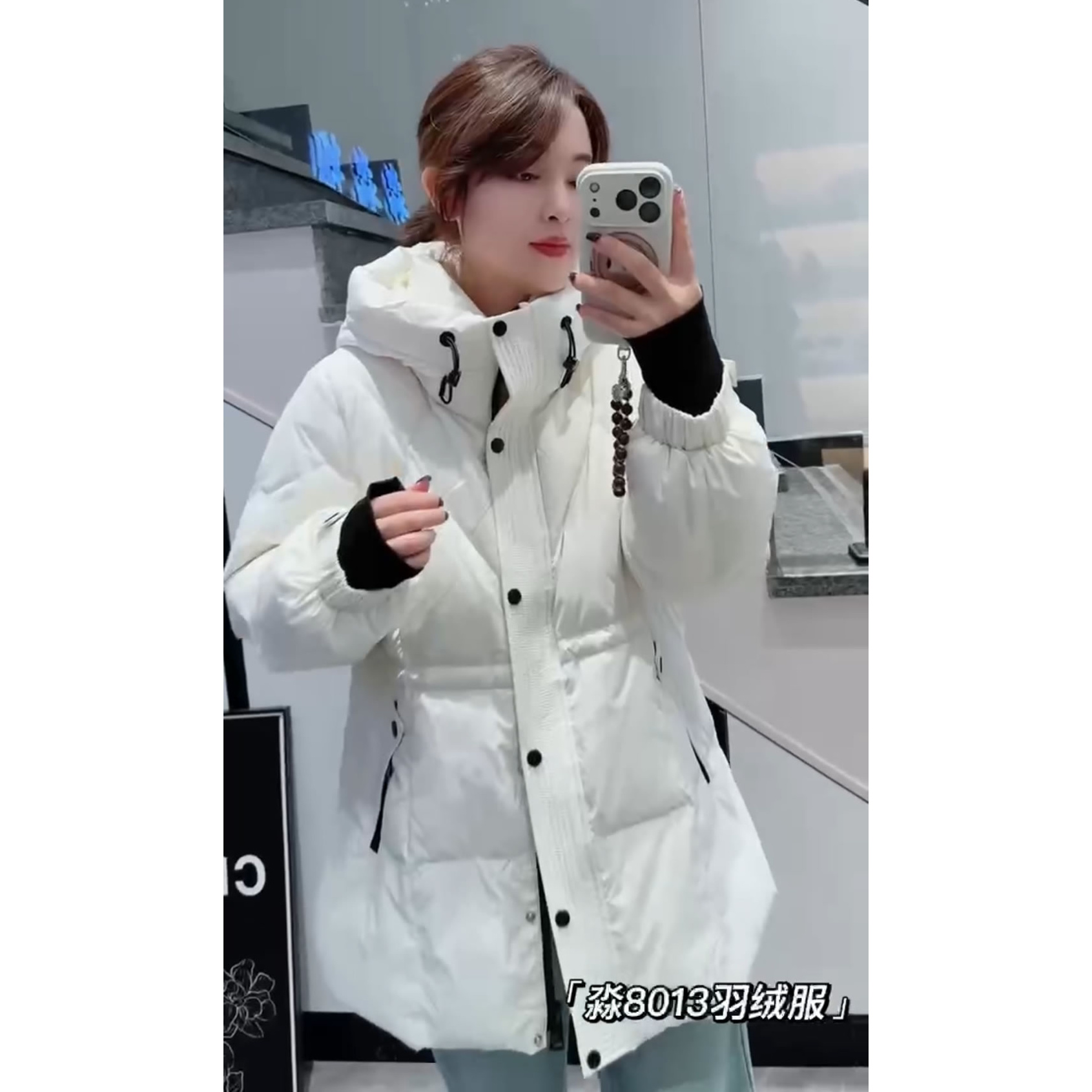 胖淼淼8013冬加大码羽绒服女 200斤胖妹mm连帽显瘦中长款90白鸭绒