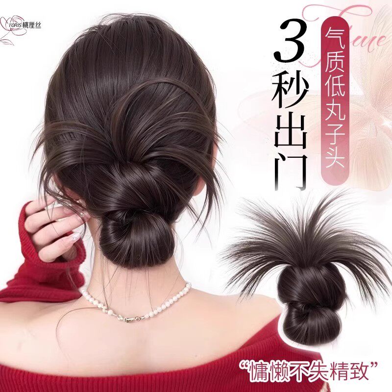 鸡毛丸子头假发抓夹女慵懒感花苞