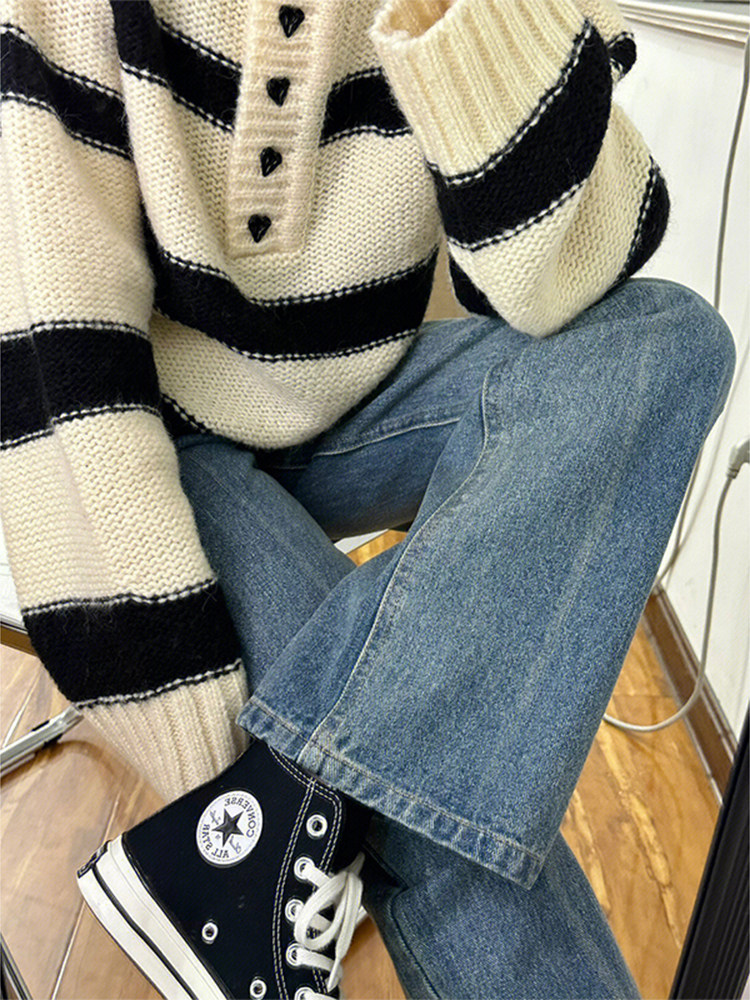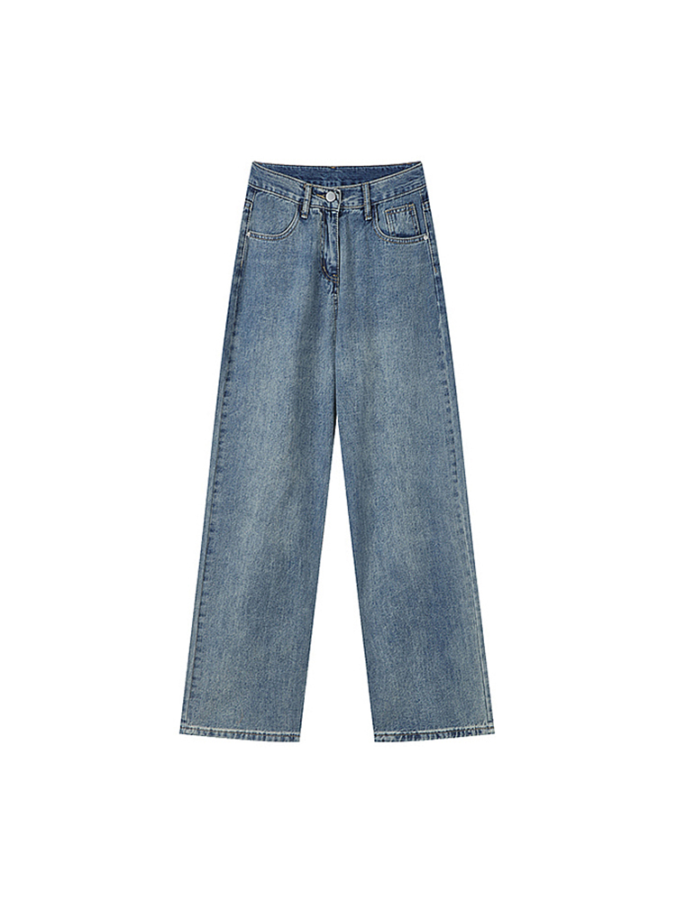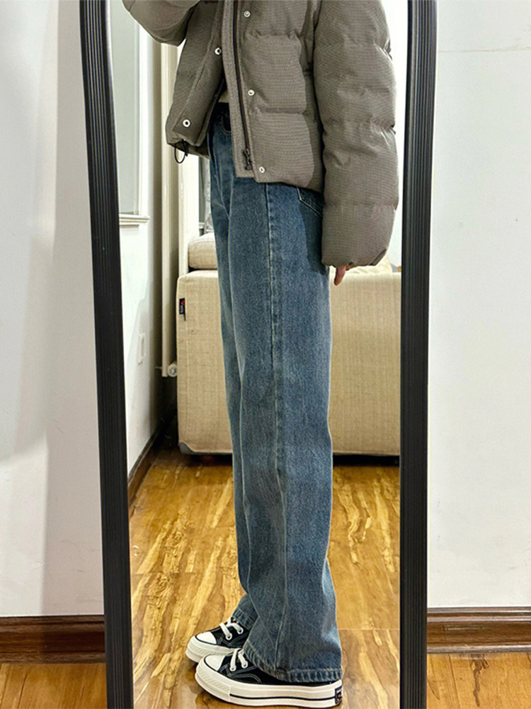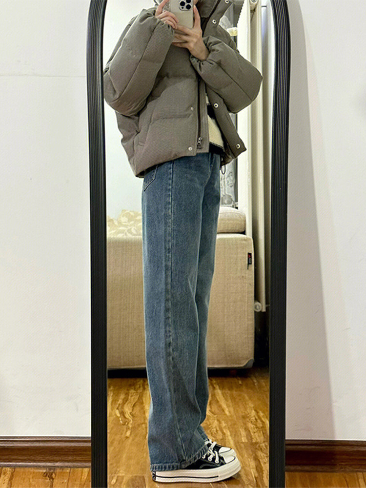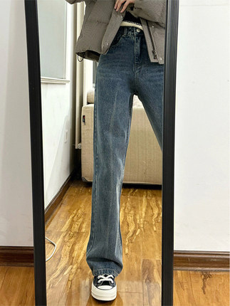 蓝色直筒牛仔裤女春秋新款大码胖mm高腰宽松显瘦梨型身材阔腿裤子
