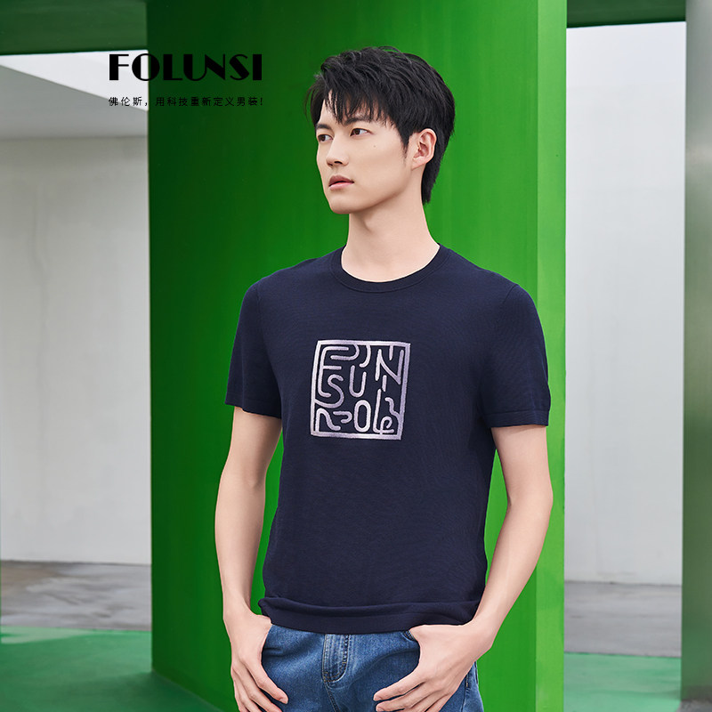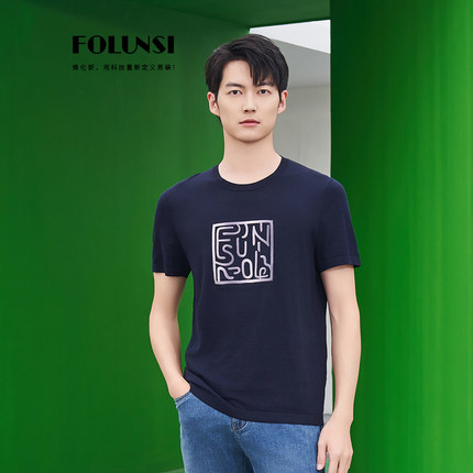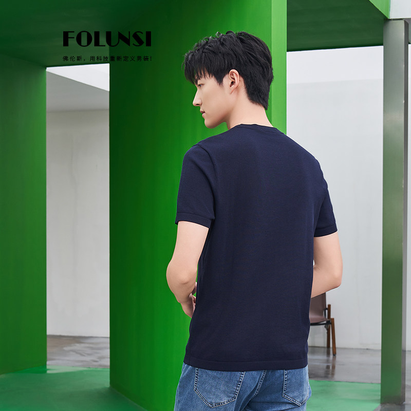 佛伦斯folunsi男士t恤短袖男夏季男装桑蚕丝商务休闲2024透气半袖