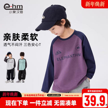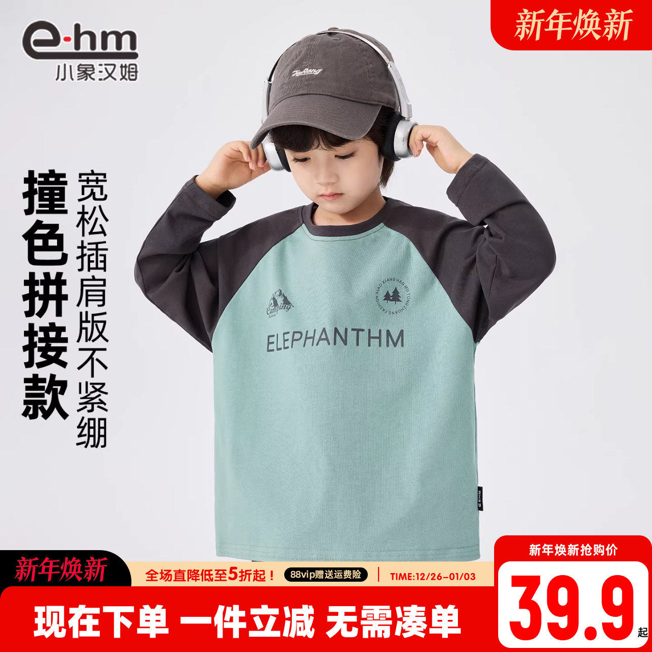 小象汉姆童装男童长袖T恤拼接款纯棉2025秋装儿童打底衫男孩上衣