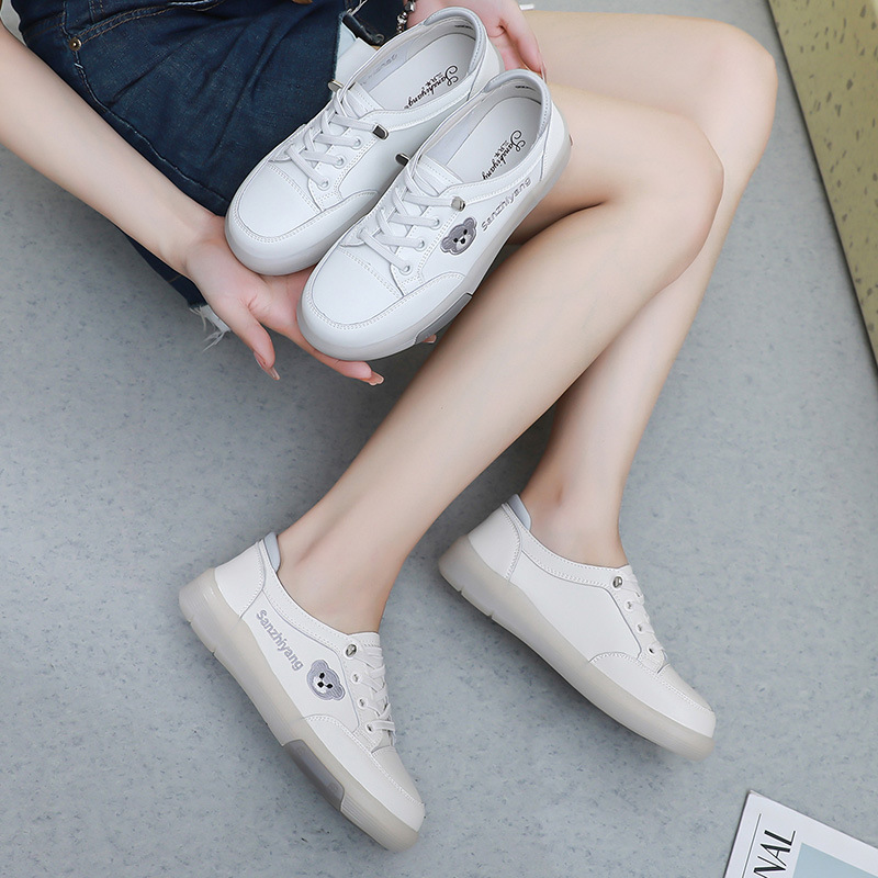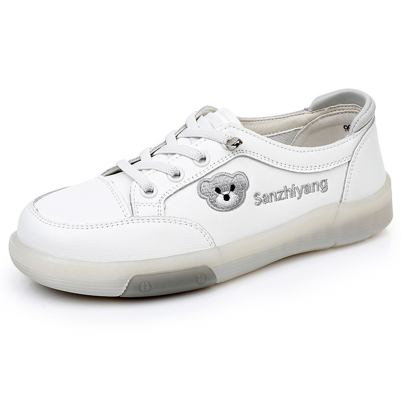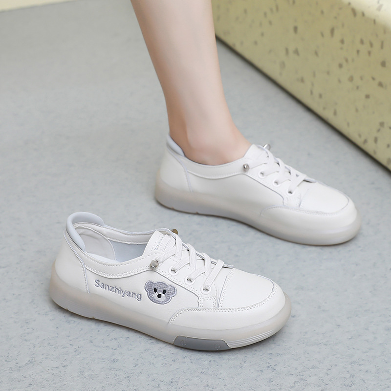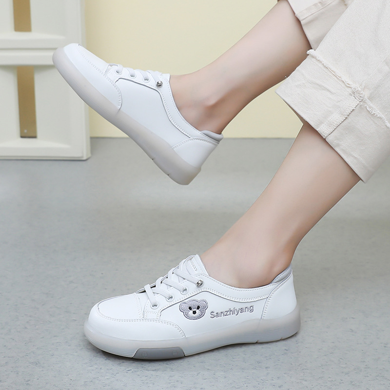 三只羊小白鞋女一脚蹬2025平底鞋子春秋休闲妈妈单鞋镂空镂空软底