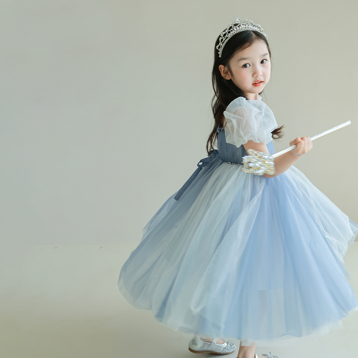 限量款utouto大耳象女童泡泡袖公主纱裙2025夏款宝儿艾莎连衣裙子