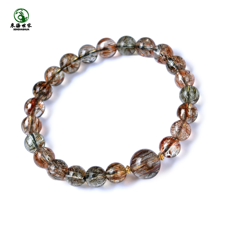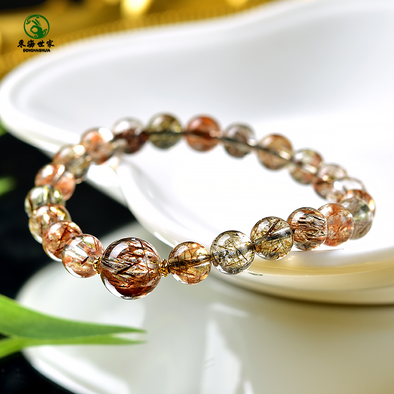 黑金超七水晶设计款手链女男烟花发晶草莓晶东海宝玉石超级7手串