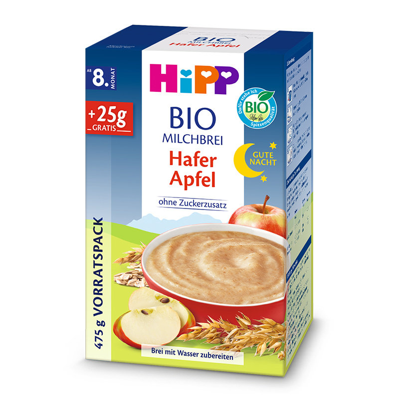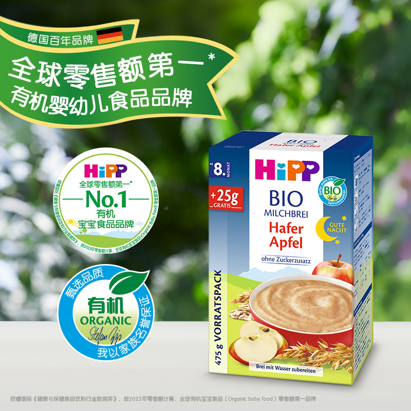 【新鲜到货】HiPP喜宝欧盟有机水果晚安苹果奶米粉儿童辅食475g