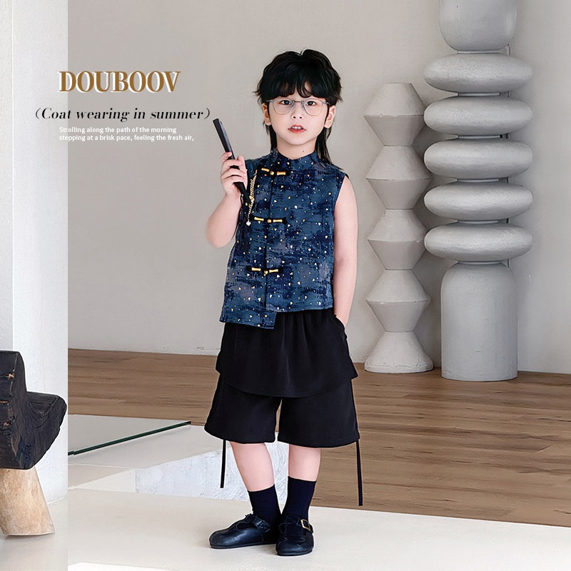 儿童新中式唐装马甲背心男童国风套装宝宝六一演出服中式无袖礼服