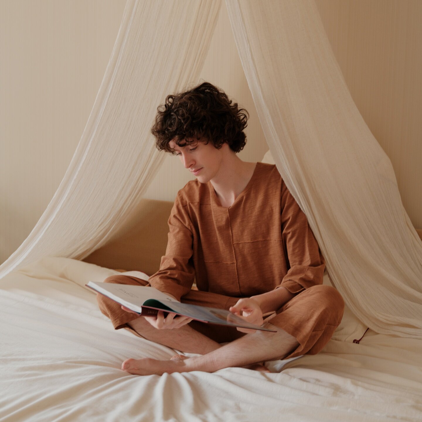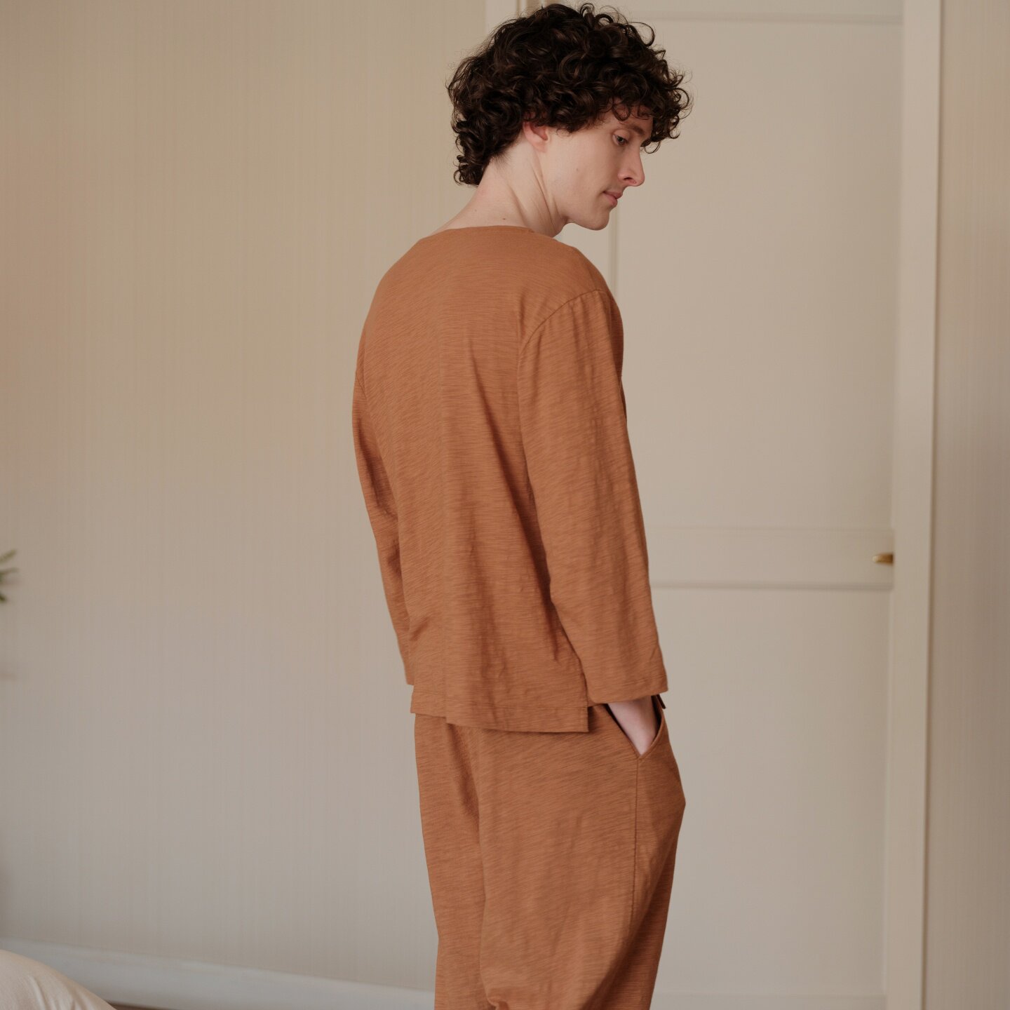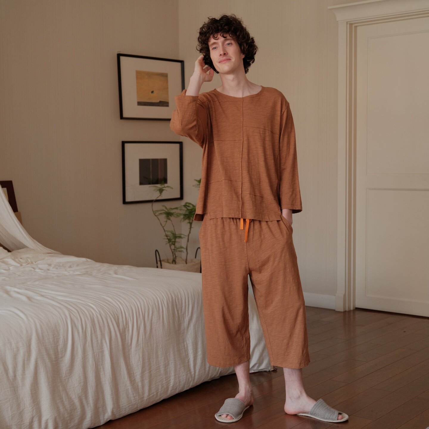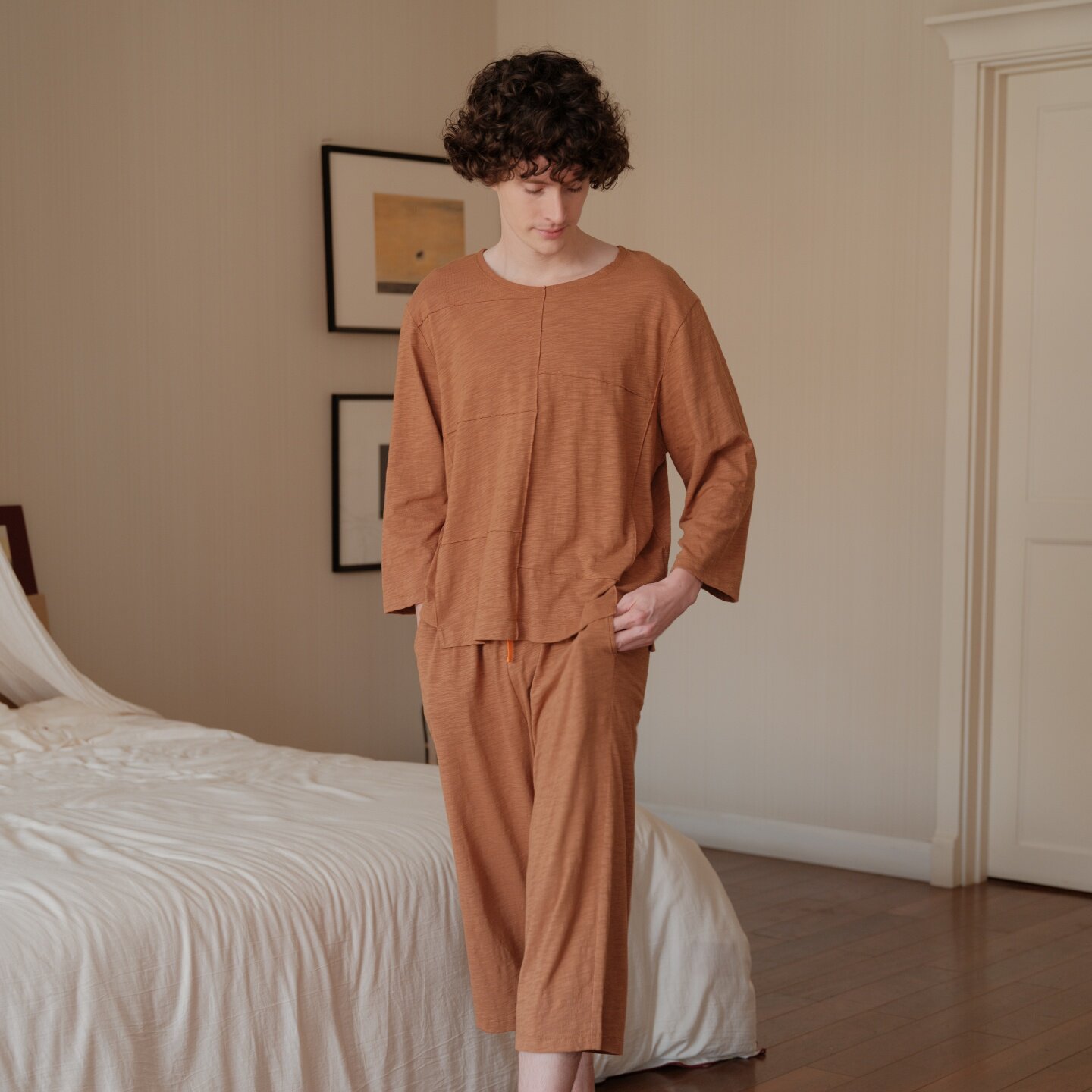 朵朵可可春夏睡衣2026新款男士针织棉竹节棉圆领七分袖家居服套装