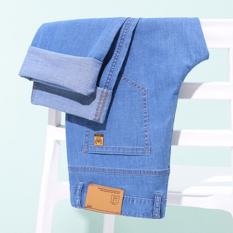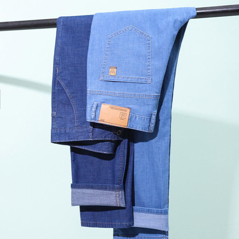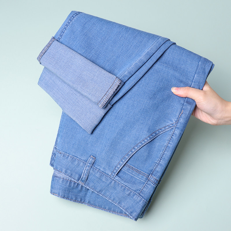 冰丝超薄牛仔裤男款宽松直筒爸爸中年商务高弹夏季薄款休闲长裤子