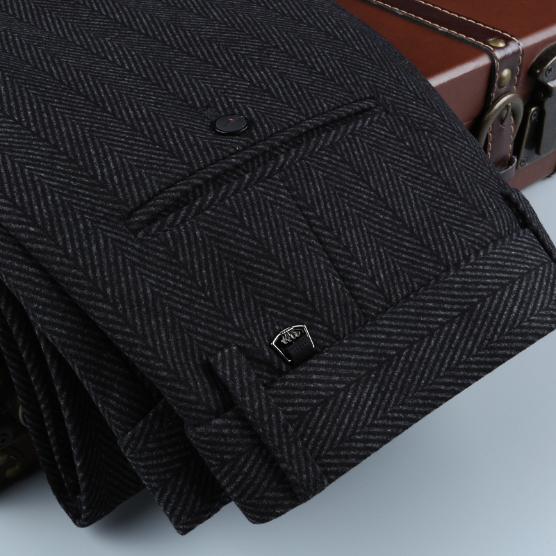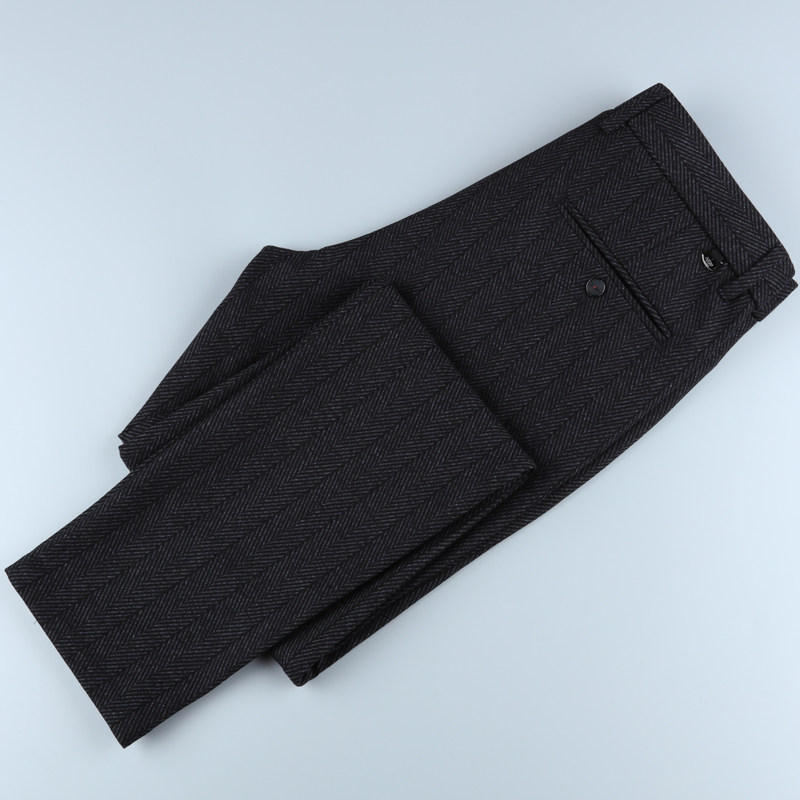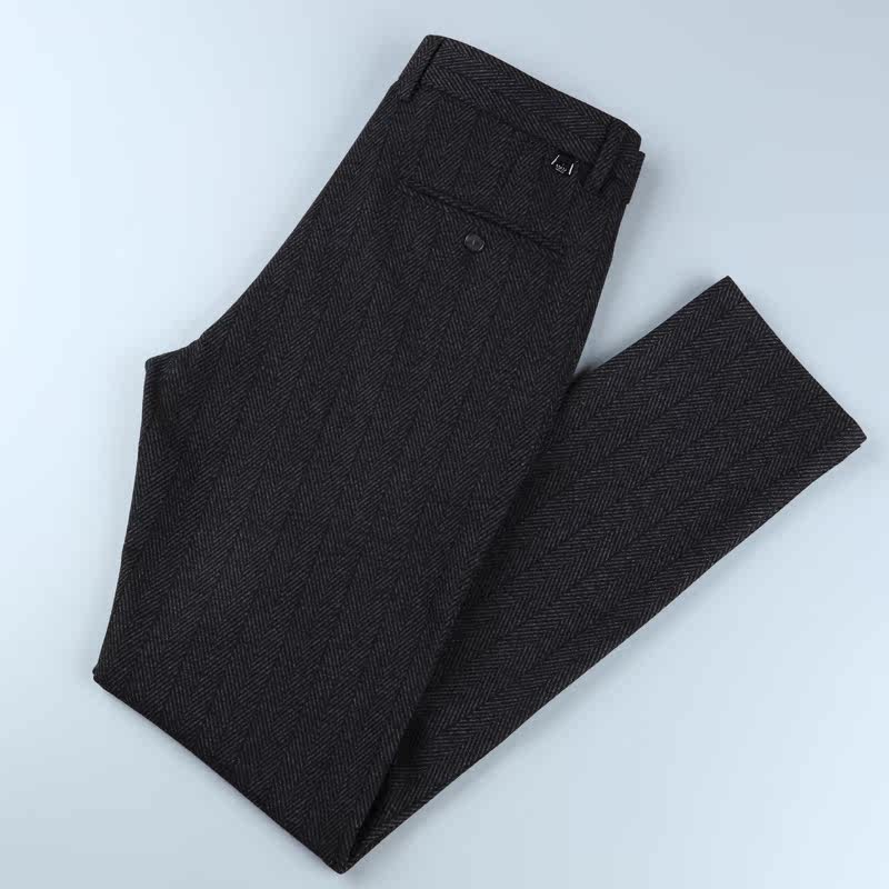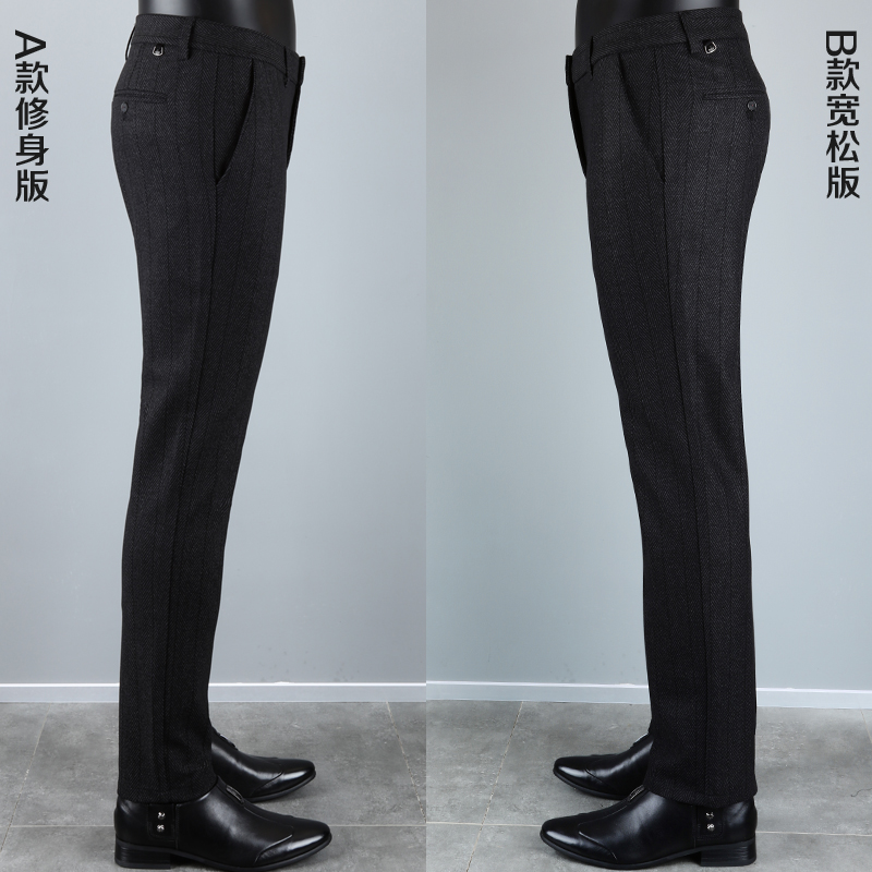男士休闲裤秋冬季商务中年高腰男裤修身直筒西裤毛呢条纹裤男厚款