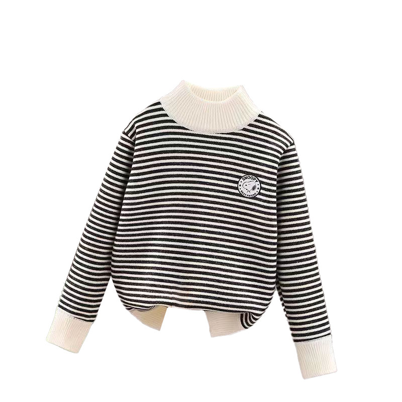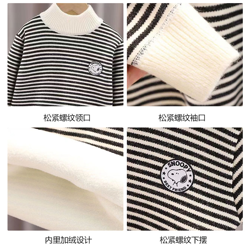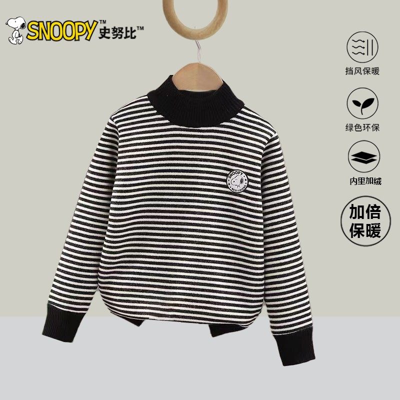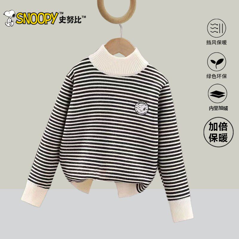 史努比高领条纹毛衣米白色黑色套头上衣儿童冬季打底女童男宝宝
