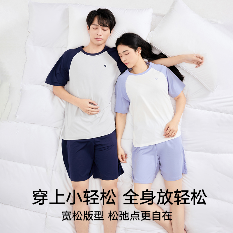 松山棉店小轻松睡衣套装女春秋薄款短袖情侣家居服男莫代尔可外穿