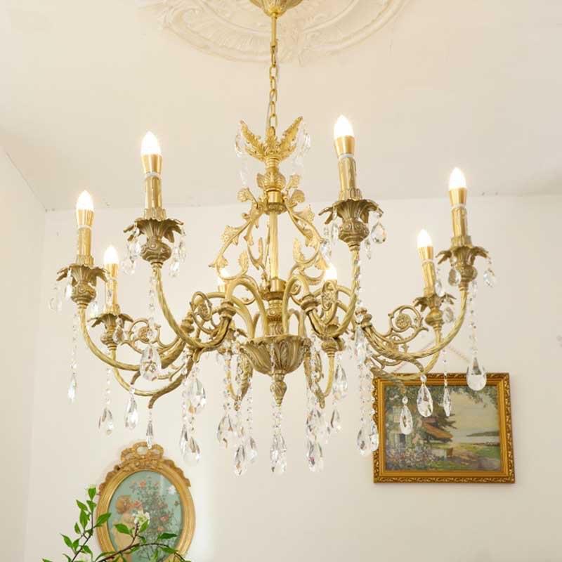 全铜法式现代水晶吊灯美式卧室中古经典民宿楼梯别墅大灯