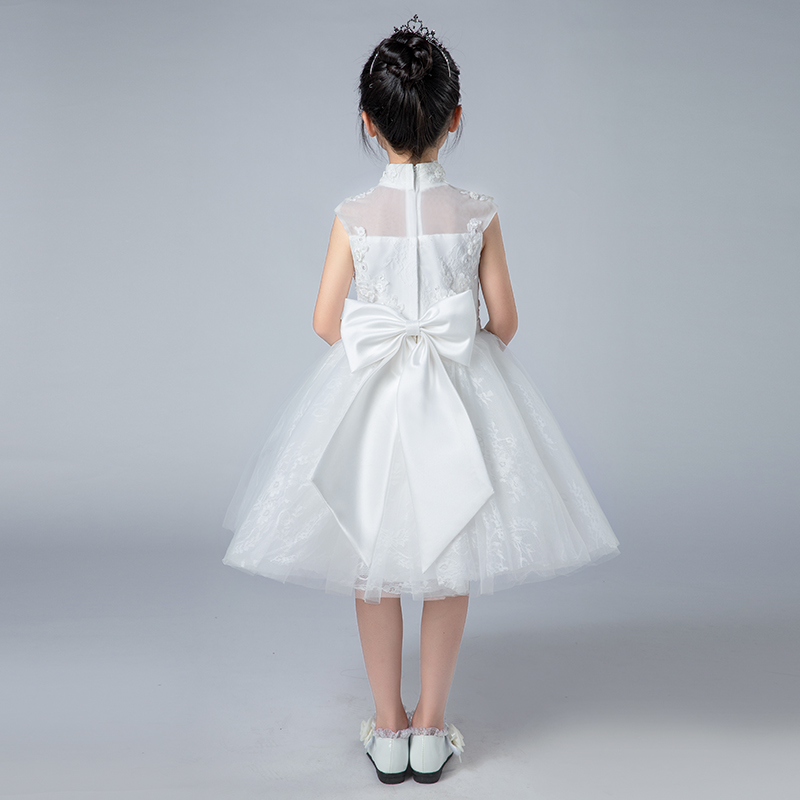 儿童蝴蝶结配件白色缎面蓬蓬裙