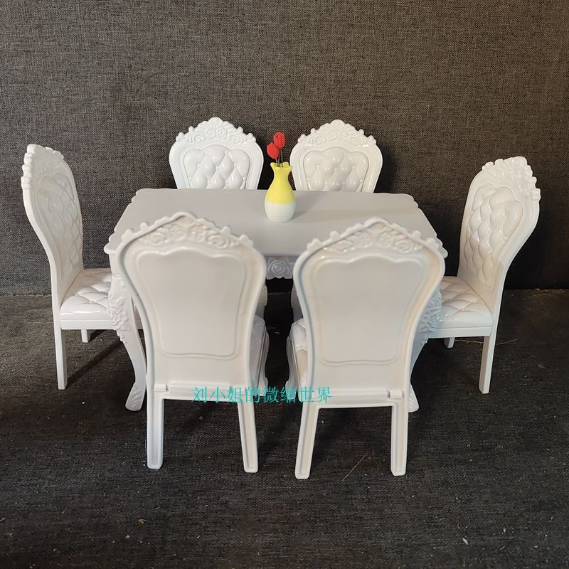 娃娃屋配件小孩过家家玩具餐厅场景摆设道具仿真迷你西餐桌椅模型