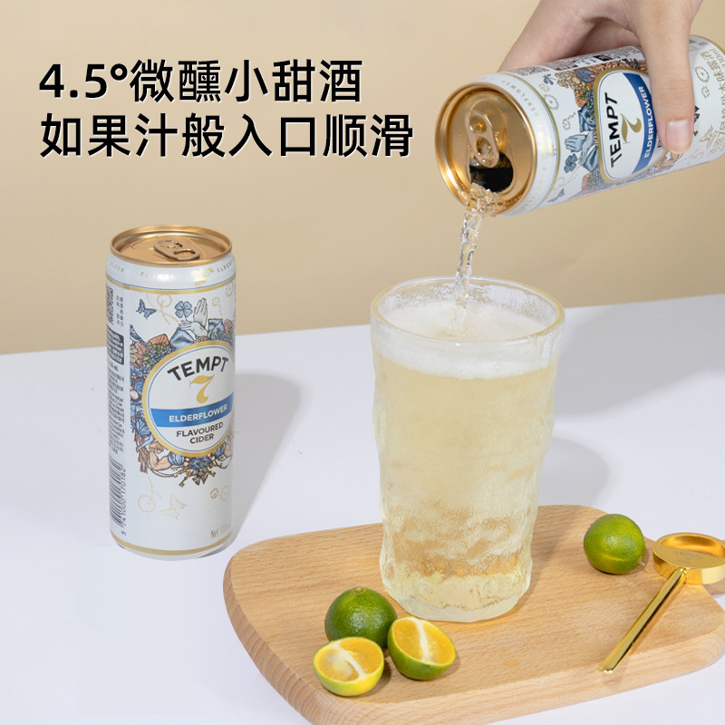 tempt诱惑7号接骨木味微醺西打果酒甜酒果啤酒七号罐装聚会露营
