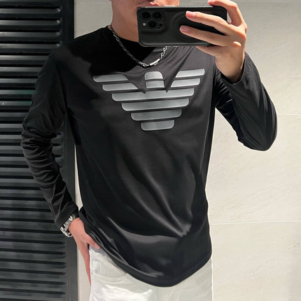 丝滑奢品高端水柔丝光棉打底圆领长袖T恤男简单欧货高品休闲潮