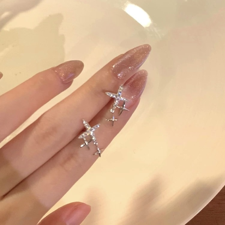 四芒星锆石耳钉女潮超闪小众设计感高级精致耳饰轻奢气质百搭耳环