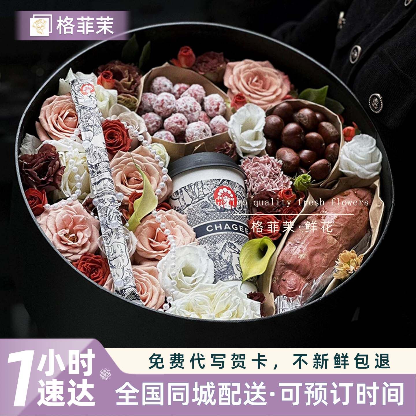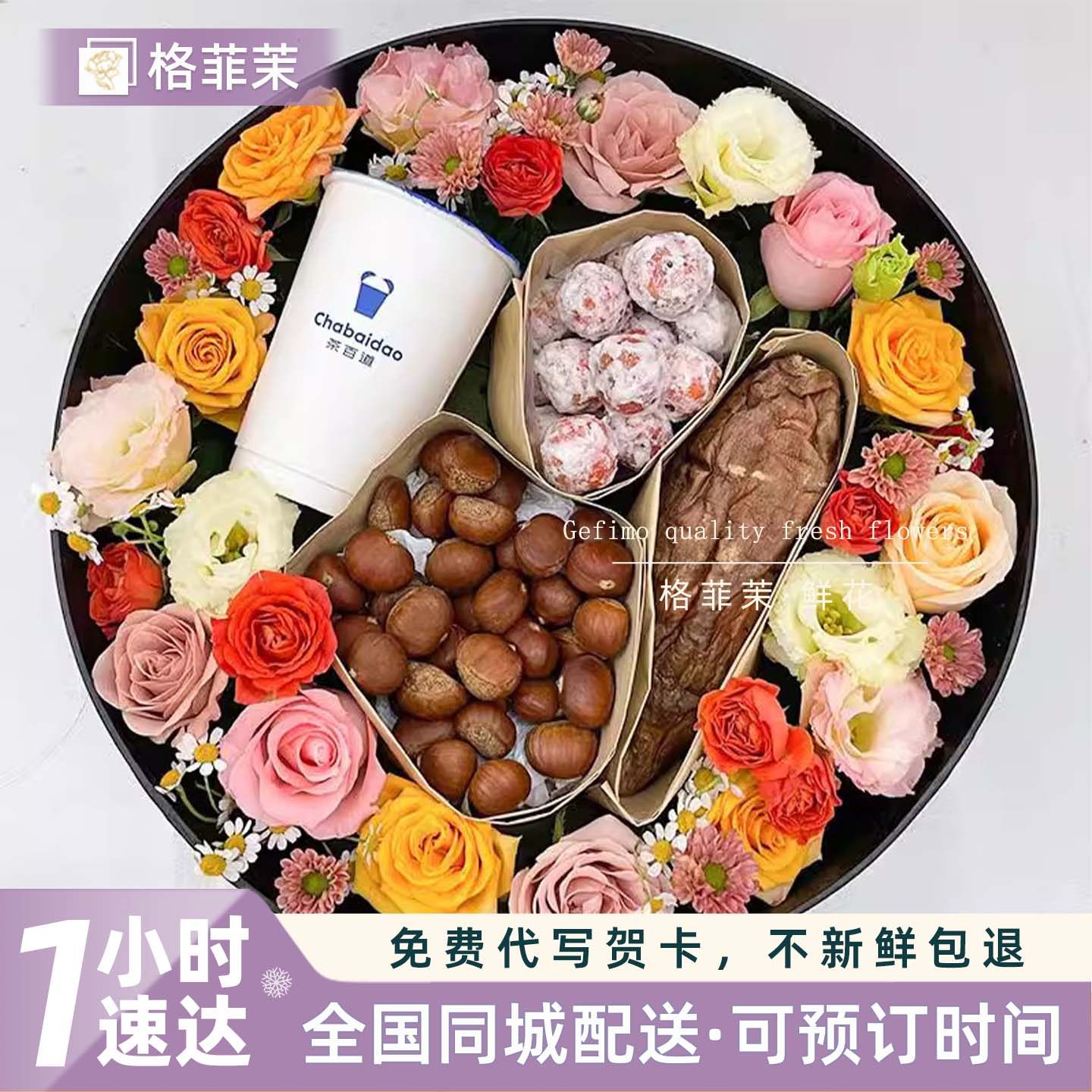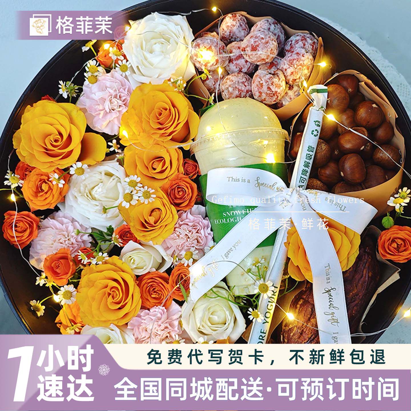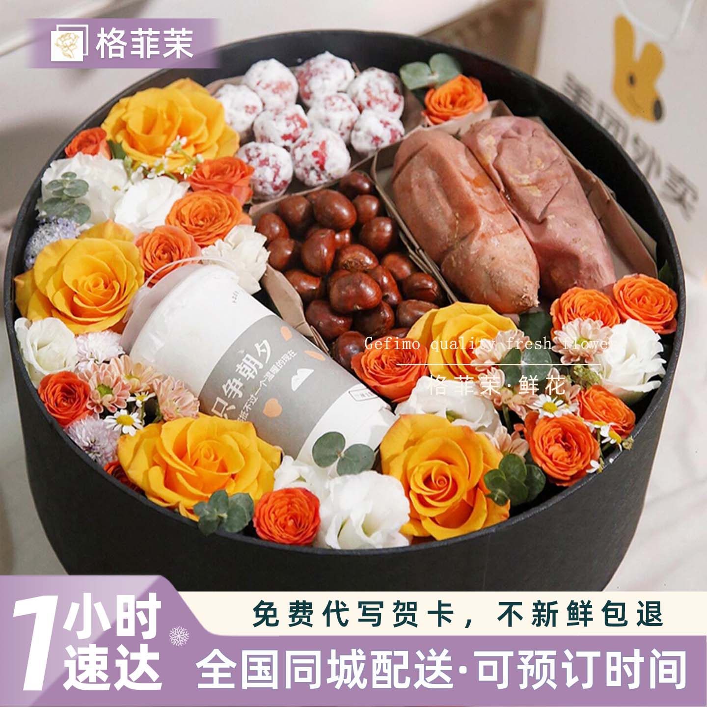 全国立冬四件套鲜花礼盒速递同城配送女友奶茶红薯板栗花束上海店