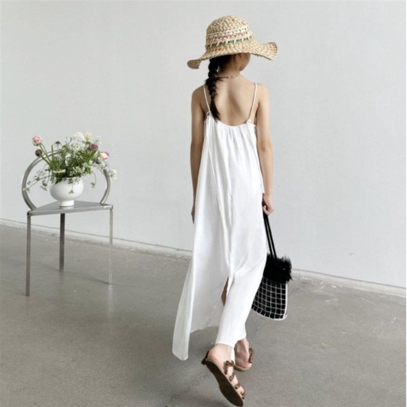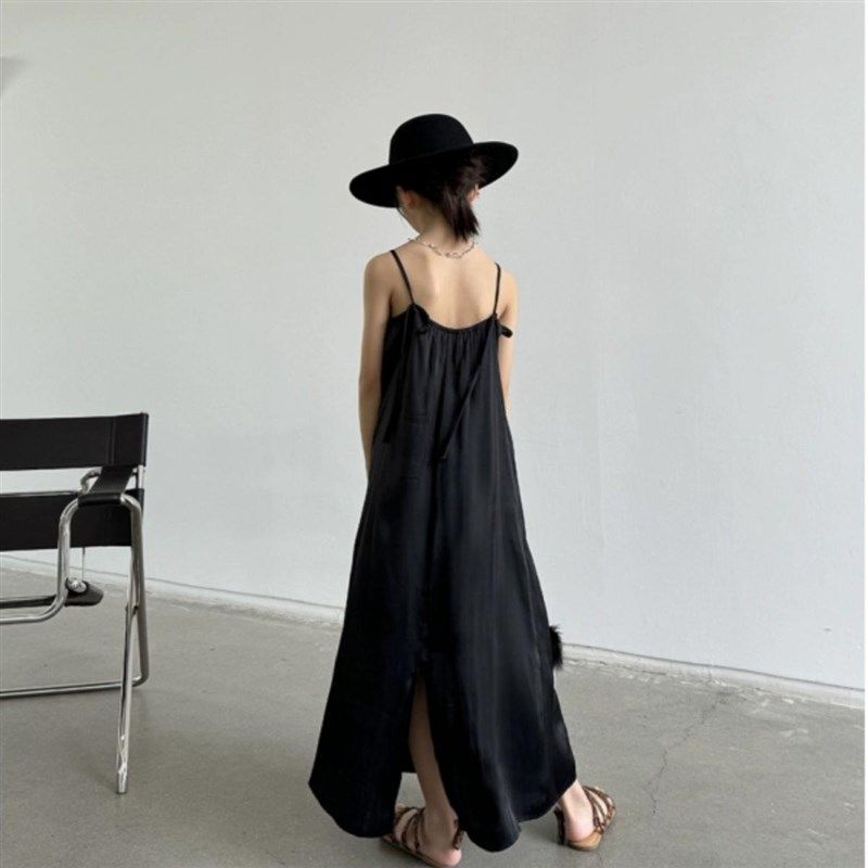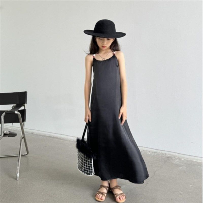 豆丁奇遇儿童度假风黑色绑绳串珠亲子吊带背心裙长连衣裙女大童潮
