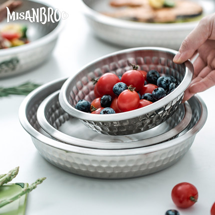 芬兰MISANBROO304不锈钢盘子加深厚圆盘菜盘碟子汤盘盆水果盘餐盘
