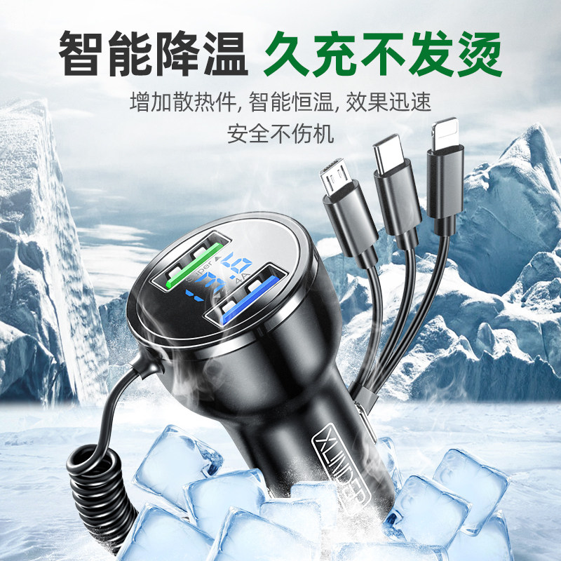 车载手机充电器点火超级快充一拖三线点烟转换插头车上汽车用车充