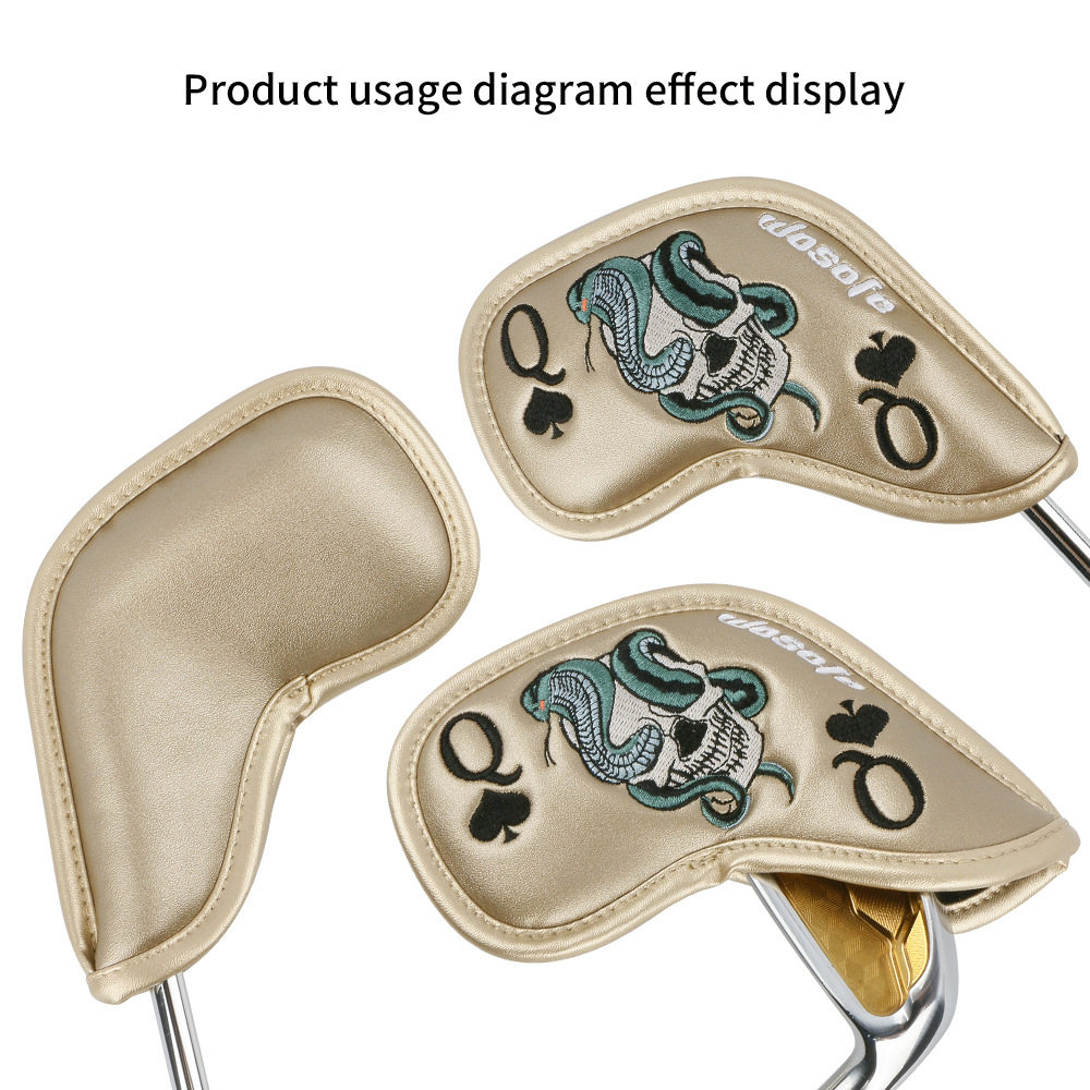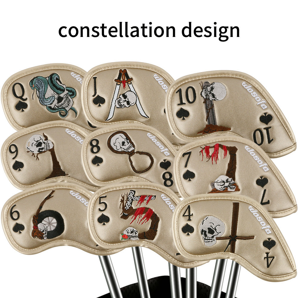 新款高尔夫铁杆套球杆帽套精美骷髅扑克刺绣杆头保护套跨境热销