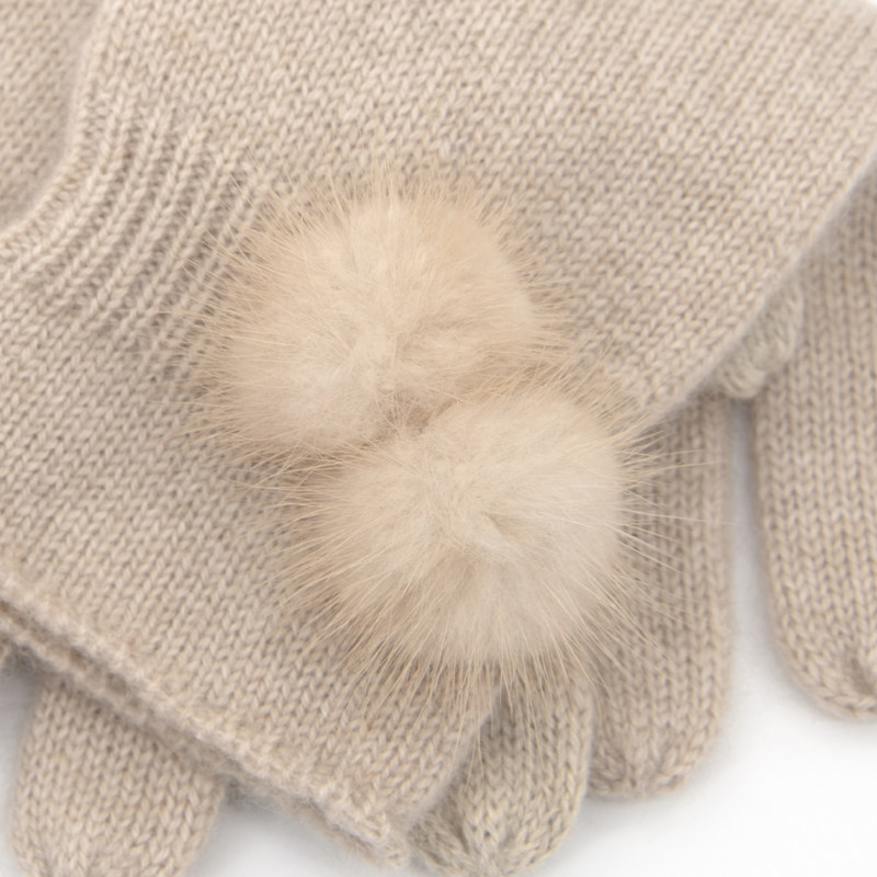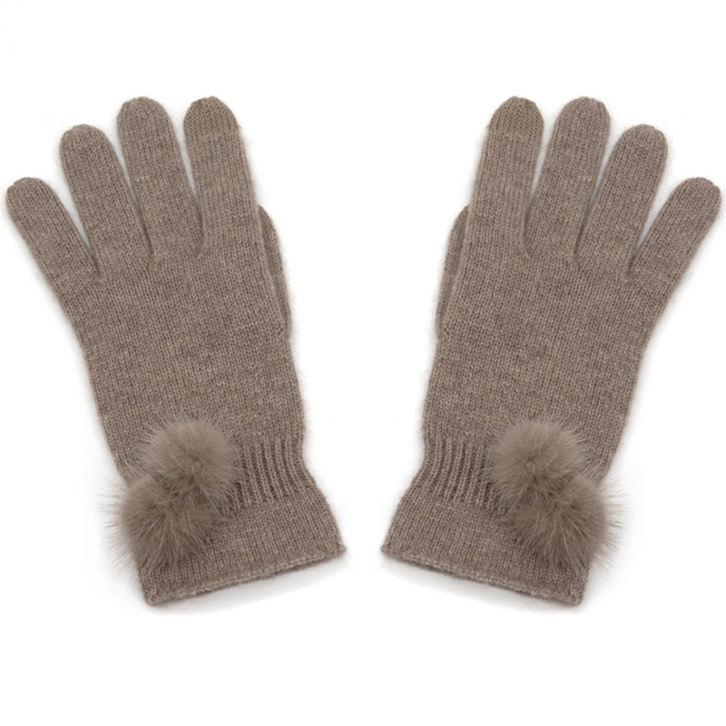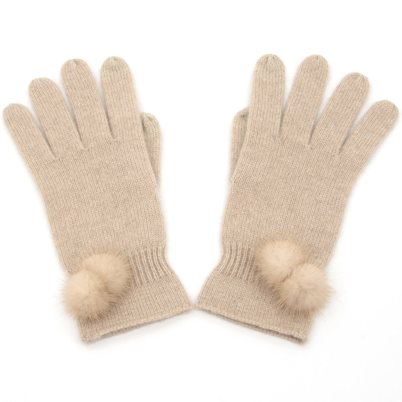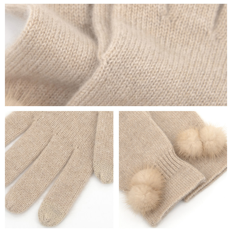 100%纯羊绒触屏手套水貂毛球手套女士冬天保暖可爱加绒防寒