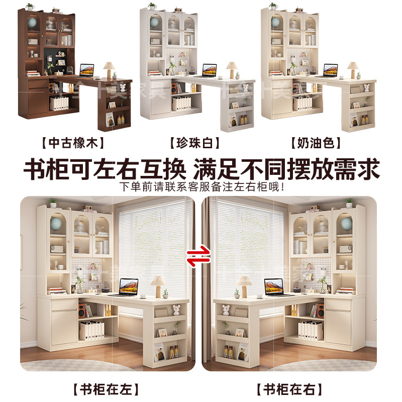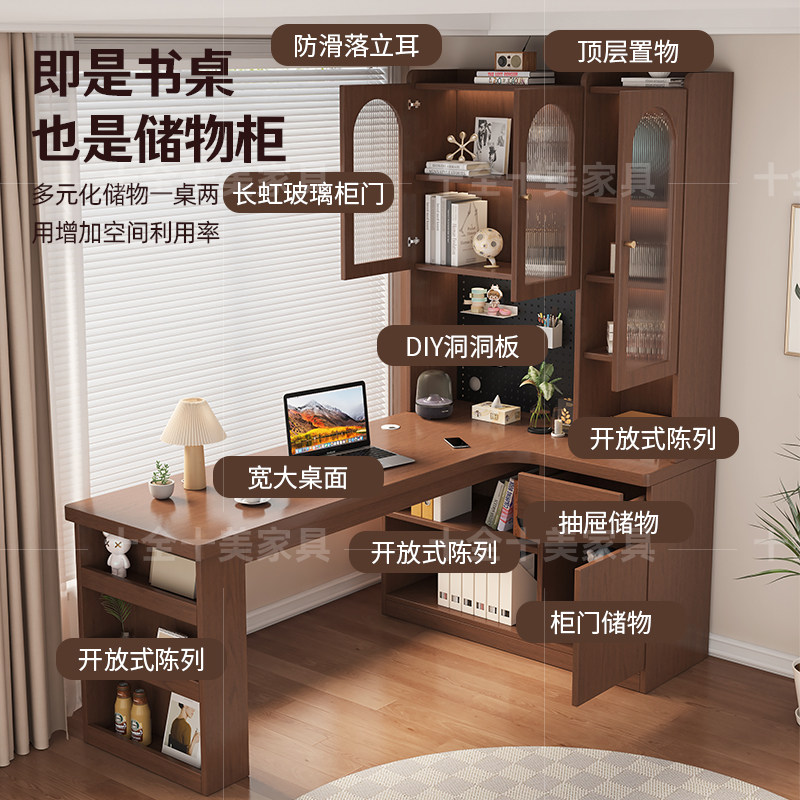 转角书桌书架一体桌卧室儿童学习写字桌实木家用办公桌台式电脑桌