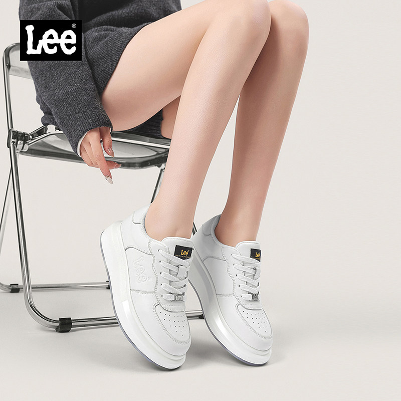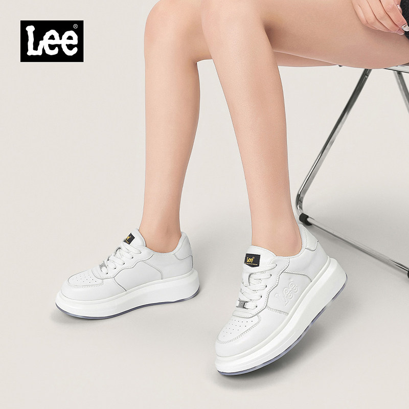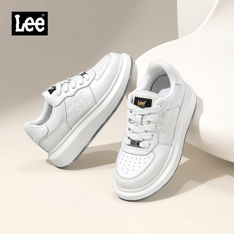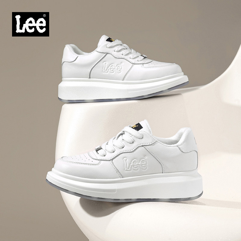 Lee官方女鞋真皮休闲鞋运动百搭鞋子潮流韩版板鞋厚底加绒小白鞋