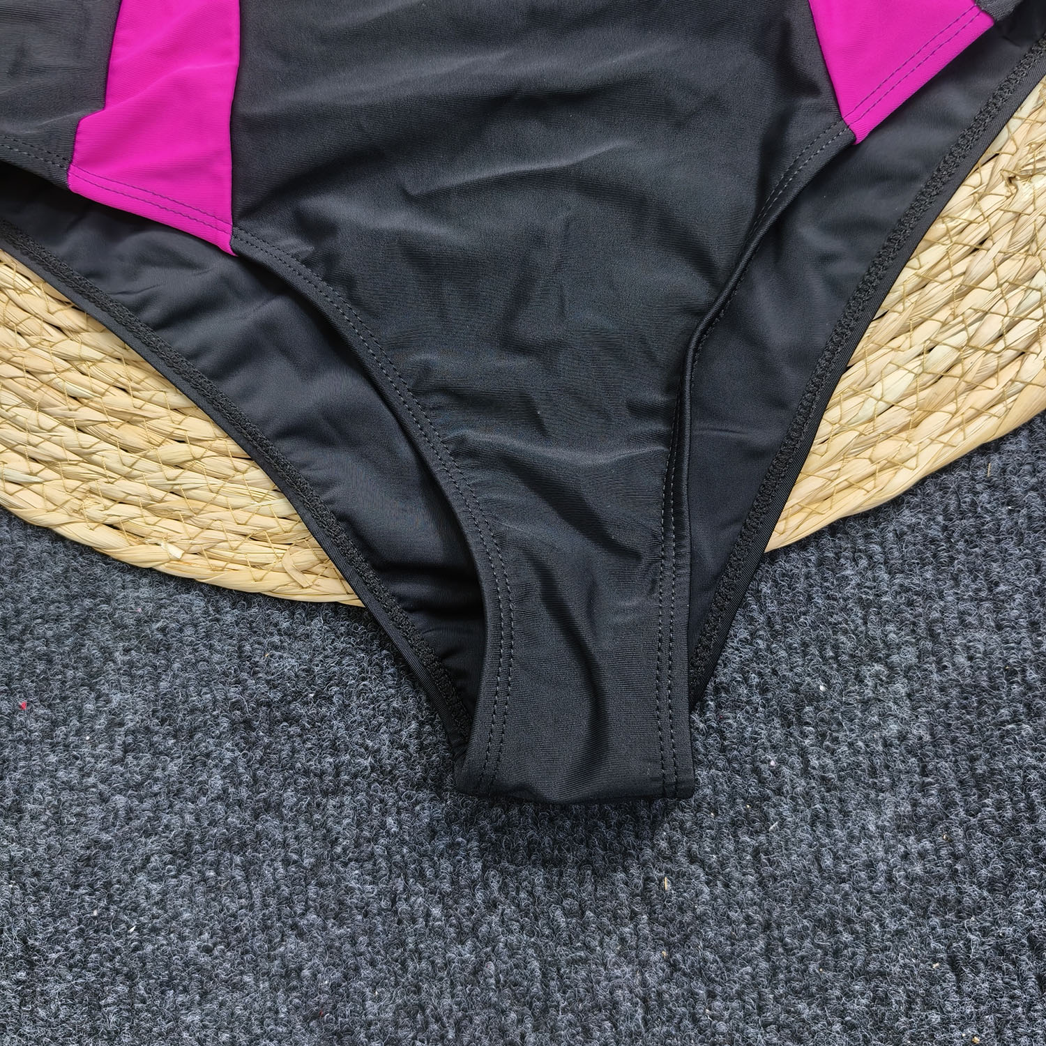 欧美性感吊带连体泳衣女拼色修身显瘦三角高叉露臀泳装游泳训练