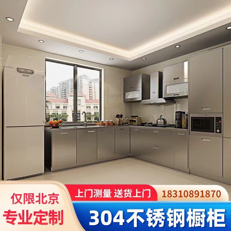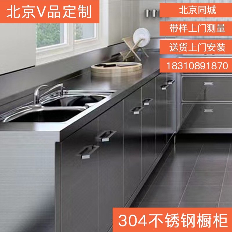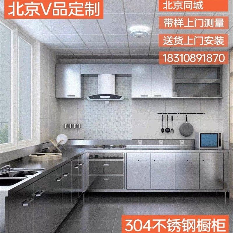 北京304不锈钢橱柜定制厨房v整体台面全不锈钢201橱柜一体成型定